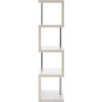 The Maze shelf unit stands at over five feet tall, and incorporates four square storage and display spaces into its slim line design. It achieves its flowing look thanks to the stainless steel poles that support its open sides. The unit has a glossy white colour that complements the sleek, reflective steel. | Orsina Maze 4 Tier White Gloss Shelf Unit