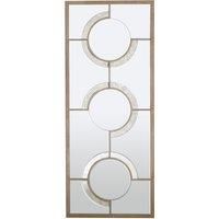 Elevate your home decor with the stunning Wall Mirror from Orsina, a modern masterpiece that embodies mid-century glamour. This exceptional rectangular shaped wall mirror features a captivating combination of straight lines and circular patterns, creating a visually striking piece that enhances any space. Each circle is meticulously bordered by an antique silver relief, adding a touch of elegance and vintage charm to the design. The wall mirror's lightly coloured wooden frame beautifully contrasts with...