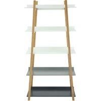 Introducing the Orsina 5 Tier Shelf Unit, a stylish and practical addition to your home decor. This large shelving unit for the living room and bedroom is designed with a sloping frame, rising in an A shape that cradles five shelves in a monochrome spectrum of black, grey, and white. Each shelf is crafted from high-quality MDF, offering a sleek and modern look while ensuring durability and stability. The unit is handcrafted from bamboo wood, known for its delicately grained, light wood frame that adds a...