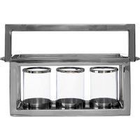 With its robust stainless steel frame, the Kensington Townhouse 2 light lantern is a great way of adding a metallic touch to home dcor. Sitting behind the lanterns clear glass are three candle holders, also made from glass but decorated with metal banding at the top and bottom. Take it to a sheltered spot in the garden to create some outdoor ambient lighting. Features and Benefits Stylish - Great for adding some interest and ambient light to your home this triple lantern light from Premier Housewares wi...