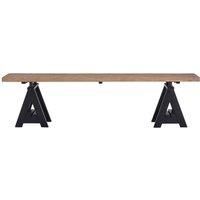 Introducing the Orsina Wooden Bench, a perfect blend of style and durability. This exquisitely crafted bench features a surface made from weathered antique pine, showcasing beautifully grained wood that adds a touch of rustic charm to any space. With a lightly coloured finish, this wooden bench is designed to fit seamlessly in various settings, whether indoors or outdoors. Constructed with a pair of distinctive black iron trestles at each end, the bench supports a thick and robust seating area, ensuring...