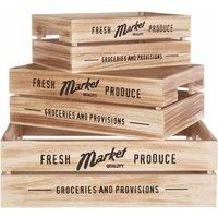 Add a touch of country charm to the kitchen with this set of three wooden crates. These crates are made from sustainable paulownia wood and feature grocery store lettering on their sides. The crates have a slatted design and have cut-out handles at each end, with high sides that make for easy stacking of fruit or vegetables. The wood has a distinctive straight grain that complements traditional kitchen designs. Features and Benefits Premium Design - Crafted with a practical and contemporary design, the ... - Manufacturers part number: 1104662