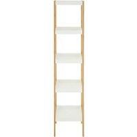 Bring practical organization and minimalist style to your space with the Orsina Five Tiered Shelf Unit. Designed with a crisp white and natural bamboo finish, this shelving unit blends well with contemporary, Scandinavian, and minimalist interiors. Featuring a strong bamboo frame and four slimline legs, it provides reliable support for everyday use while maintaining a light, airy profile in any room. The unit includes five tier shelves, each square in shape with a recessed design that keeps contents sec...