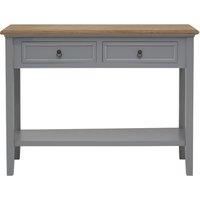 Elevate your homes entryway or living room with the Orsina Antique Grey Console Table, a refined blend of coastal design and practical function. Built from paulownia wood, this modern console table features a slim, elegant profile that complements both contemporary and traditional interiors. The subdued antique grey finish is subtly weathered, giving the piece a characterful, lived-in look, while the warm brown tabletop adds contrast and highlights the natural straight grain pattern. This two-drawer hal...