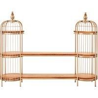 Transform your living space with the Champagne Gold Finish Birdcage Shelf Unit from Orsina. This captivating Champagne Gold shelf unit is more than just a piece of furniture; its a statement of elegance and functionality. Inspired by the delicate yet opulent aesthetics of birdcages, this unit features two dome-topped designs joined by two long wooden shelves, creating a stunning focal point for your living room or any room in your home. Crafted from strong iron with an opulent Champagne Gold finish, thi...