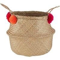 Created from sustainable seagrass, this small woven basket adds a natural accent to interior settings. The tactile and durable basket retains the neutral colour of the seagrass and features matching loop handles at each side of the opening. Pink, red and orange pom poms add a vibrant decorative flourish to the basket’s top and contrast with the light colouring. Its woven pattern lends this basket to fusion style interiors. Features and Benefits Sustainable seagrass - created from sustainable seag... - Manufacturers part number: Premier Housewares_