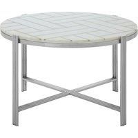 Elevate your living space with the Coffee Table from Orsina. This stunning table features a white marble top that provides a sleek and refined surface, complemented by a striking gold finish design that captures the essence of modern art. The geometric motif on the tabletop creates a bold statement, making it the perfect centerpiece for any living room, lounge, or family room. Designed to stand out, this coffee table is a fusion of contemporary and art deco styles. The gold finish geometric design contr...