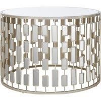 A mirrored glass top is neatly set into its rim and gives this table a reflective, glamorous appeal. Coordinate it with silver and gold contemporary luxe style lighting and accessories.