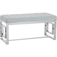 Introducing the Powder Blue Velvet and Silver Bench from Orsina a perfect blend of style and functionality. This modern bench features a button tufted finish that adds a touch of elegance to any space, making it an ideal accent piece for your home, garden, or patio. Upholstered in soft powder blue velvet, the bench provides a comfortable cushioned seat, allowing you to relax in style. Designed with versatility in mind, this storage bench can serve as a dining bench or outdoor bench, enhancing your dinin...