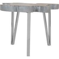 The Teak Wood Medium Side Table from Orsina is an elegant blend of natural craftsmanship and contemporary design, making it a versatile accent piece for any interior. Part of the exotic Surak collection, this side table features a natural teak wood tabletop with a stunning grain finish that highlights the beauty of the material. The irregular edges are accentuated with a silver finish, perfectly complemented by its three stainless steel legs for a cohesive and modern look. Measuring H50 x L60 x W55 and ...