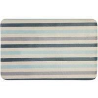Bring a breezy coastal feel to the bathroom with this stripy bath mat. This rectangular mat has a highly absorbent and quick-dry microfiber surface with skid-proof backing which keeps it in place. It has a striped pattern in pastel shades which gives it a fresh aesthetic. Discreet stitching along the edges contributes to the clean visual appeal of this contemporary bath mat. Features and Benefits Highly Absorbent - Made with quick-dry microfiber to increase absorbency. Non-Slip Back - To keep the mat i... - Manufacturers part number: 1605323