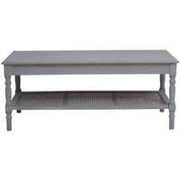 Turned spindle legs along with the lower shelf, contribute to this coffee table s timeless appearance. Made from durable pine wood, this table has a slate grey finish, emphasising the classic style. Features: Antique finish Sturdy material Natural wood Traditional style table Contemporary design Specifications: Dimensions: H:48.0 x W:120.0 x D:60.0 cm Colour: Grey Guarantee:12 Months Material: Wood Model Number: 2406641 Self Assembly Required: Yes