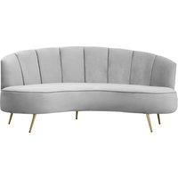 The Hasna sofa is upholstered of velvet having a clean line stitching with a pleated effect on the back. Elevated by slanted metal legs in gold finish, the curved shape of this sofa makes a luxe statement in the living area. | Orsina Hasna Three Seat Velvet Sofa in Grey | Size: 3 Seater