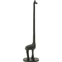 This toilet roll holder boasts a free-standing giraffe figurine made from robust cast iron in black colour. Supported by a sturdy round base, this versatile roll holder blends easily with vintage and safari-inspired decors. Features: Giraffe figurine Sturdy round base Decorative Freestanding Premium quality metal cast Specifications: Dimensions: H:45.0 x W:12.0 x D:8.0 cm Colour: Black Guarantee:1 year Material: Metal Model Number: 1601860