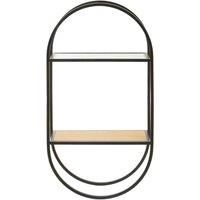 Two tier design Features: Rounded metal frame Glass and wooden shelves Space saver Industrial Specifications: Dimensions: H:66.0 x W:35.0 x D:14.0 cm Colour: Black Guarantee:1 Year Material: Glass, Metal, Model Number: 2407021