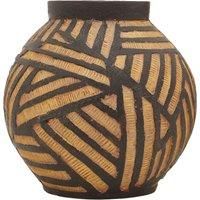 Made from magnesia fibreglass, this rounded planter features asymmetric engraving in a black and muted natural finish, giving the design warmth and texture. The planter will bring a contemporary charm to interiors with the hand painted geometric motif. | Orsina Darnell Round Natural & Black Planter