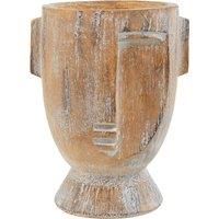 Carved from natural magnesia fibreglass, this large face planter has a distressed effect that gives it a rustic look. Supported by a sturdy round base, the abstract face design will bring character, depth and drama to the home or office. | Orsina Darnell Large Natural Face Planter in Brown