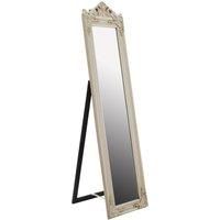 Interiors By Premier Holmes Champagne Floor Mirror This floor mirror features a smooth rectangular pane of mirrored glass which is inset into a luxe champagne finish wooden frame, creating a sleek and contemporary aesthetic. Depth: 4 CM Height: 160 CM Material Content: 39% Solid Wood 3% Resin 10% Plaster 4% MDF 44% Mirror Width: 40 CM Wooden frame Minimalist style Rectangular mirror Sleek floor mirror Contemporary design