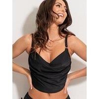 Pour Moi Mykonos Cowl Neck Underwired Top Make a poolside statement in the Mykonos Cowl Neck Bikini Top. Inspired by the stylish Greek island, this bikini top is perfect for anything from lounging poolside to drinks at the beach bar. Feel fabulous in this flattering and body-loving cowl neck style in chic shine fabric. Featuring halter tie straps to adjust this style how you want. Decorated with gold hardware, wear this beautiful style with bikini briefs from the Mykonos collection for ultimate swimwear...