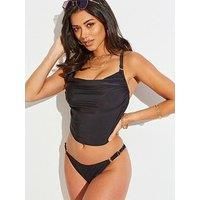 Pour Moi Mykonos Adjustable Side Brief Inspired by the stylish Greek island, the Mykonos Side Brief oozes chicness and style. Made from beautiful chic fabric and gold hardware this beautiful style features a side adjuster to wear however you feel comfortable. Wear with the Mykonos Cowl Neck Underwired Top for swimwear style perfection. Chic shine fabric Material Content: Recycled polyester 82 %,Elastane 18 % Side adjuster for adjustable coverage Gold hardware Made with Xtra-life lycra