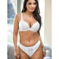 Pour Moi Ooo La La Thong There's nothing boring about this thong. Featuring a beautiful two-tone lace front panel with mesh sides and back, this thong screams opulence. Although this thong features luxurious details such as lace fabric and jewel droplets, you won't compromise on comfort. The elasticated waist and fabric sides provide extra comfort. Material Content: Poly amide 87 %, Elastane 13 % Thong shape Soft mesh back with bagged out edge for extra comfort Scalloped opulent two-tone lace front pa... - Manufacturers part number: 28604-XS-White_LCL