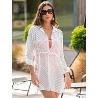 Pour Moi Chevron Stripe Button Through Beach Shirt Enhance your beachwear look with the Chevron Stripe Button Through Beach Shirt. Made from a lightweight chiffon fabric, this shirt is designed to keep you cool and comfortable even in the hottest of days. With its button placket, this shirt is easy to put on and take off, making it perfect for a day at the beach or a casual outing. The functional tie waist closure adds a touch of versatility, allowing you to adjust the fit to your liking. You'll never ...