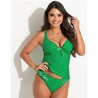 Pour Moi Getaway Underwired Non-Padded Tankini Discover the perfect swimwear companion with the Getaway Underwired Non-Padded Tankini. Your ultimate beach essential, this non-padded style with underwired support will keep you feeling confident and secure all day long. Admire the charming, gathered detail on the cups of this contrast print swimsuit. Featuring fully adjustable straps and back clasp fastening, ensuring you're supported, comfortable and confident wherever your next getaway takes you. With ...