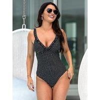 Pour Moi Sicily Frill Tummy Control Swimsuit Embrace coastal glamour in the Sicily Frill Tummy Control Swimsuit. Featuring a built-in tummy control panel and adjustable straps for a comfortable and supportive fit that will never feel restrictive. This non-wired swimsuit with non-padded cups, is decorated beautifully with a frill neckline and chic tie detailing at the centre front of this swimsuit. Non-padded cups Material Content: Poly amide 80 %,Elastane 20 % Non-wired swimsuit Fully adjustable straps ...