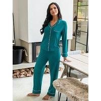 Pour Moi Bamboo Jersey Button Through Revere Collar Pyjama Set Enjoy the super soft feel of lightweight, breathable bamboo jersey with the Bamboo Jersey Button Through Revere Collar Pyjama Set. Featuring a classic button through design with contrast piping details, experience the perfect blend of luxury and comfort with this must-have pyjama set that you'll want to wear every night. PJ set Material Content: Viscose 96 %, Elastane 4 % Button through Lightweight breathable bamboo fabric Contrast piping d...