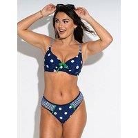 Pour Moi Beach House Frill Tab Brief Add some flirty and feminine details to your swimwear collection with the Beach House Frill Tab Brief. Providing you with medium coverage, make a statement in this stylish brief with contrast stripe frill and detailing. For all-over nautical style pair, the Beach House Frill Tab Brief with a bikini top from the Beach House collection. Contrast stripe frill Contrast aqua detail Medium coverage brief Material Content: Poly amide 80 %,Elastane 20 %