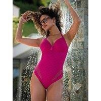 Pour Moi Castaway Adjustable Halter Underwired Swimsuit Soak up the sun in style in our stunning Castaway swimsuit, the super flattering update to your summer wardrobe. Featuring an all-over crochet lace, cut out panels to the leg line and back keyhole, cut out detailing, this style ticks all the boxes when it comes to looking on-trend. If you' re looking for support when you brave the waves, then we' ve got you covered! This swimsuit features underwired, non-padded cups and a double strap halter tie ... - Manufacturers part number: 12MYW