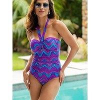 Pour Moi Malibu Halter Strapless Tummy Control Swimsuit Dive in and feel amazing with the Malibu Halter Strapless Tummy Control Swimsuit. This stunning halter-neck swimming costume gives you the best of both worldswear it with the adjustable, removable tie-neck for extra support or go strapless for a sleek, sun-kissed look. The tummy control panel smooths and flatters, while the hidden shelf support and moulded cups provide a comfortable, secure fit. Designed in a chic bandeau style, this swimsuit is al... - Manufacturers part number: 12Q1P