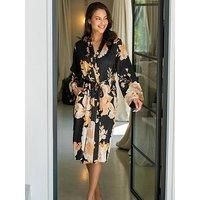 Pour Moi Dusk Printed Satin Midi Dressing Gown Wrap yourself in pure elegance with the Dusk Printed Satin Midi Dressing Gown. Made from glossy, swoon-worthy satin, this dreamy number is your shortcut to instant glamour.With its flattering midi length and bold floral print, the Dusk gown brings all the drama in the best way. The kimono-style sleeves with delicate piping detail add a touch of luxe, not forgetting the functional side pockets.Whether you' re getting ready, winding down, or just want to fee...