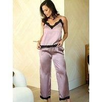 Pour Moi Dusk Satin and Lace Cami and Trouser Pyjama Set Slip into something more luxurious for the evening with the Dusk Satin and Lace Cami and Trouser Pyjama Set. This irresistible pyjama set is crafted with the finest blend of lace and satin, combining the softness of satin with the delicate allure of lace, creating a stunning contrast that is sure to enhance your sleepwear collection. This pyjama set features a camisole pyjama top with adjustable thin straps and elasticated waist trousers so you ca...