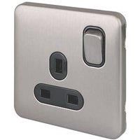 Schneider Electric Lisse Deco 13A 1-Gang SP Switched Plug Socket Brushed Stainless Steel with Black Inserts (472CC)
