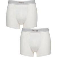 No fuss, no frills but all quality, Jeep Cotton Plain Fitted Hipster Trunks are trunks that fit low on the waist, made in stretch jersey for a great fit. Each pack contains two plain, single colour pairs in contrasting shades with shorter 4cm inseam legs. The trunks have a double layer front pouch with no fly and a saddle seat panel with flat comfort seams. The waist is fully elasticated and shows a Jeep patch at the front. (12/12) | Jeep Men 2 Pack Cotton Plain Fitted Hipster Trunks in White | Size: X-... - Manufacturers part number: Jeep_