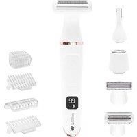 - VERSATILE 4‑IN‑1 GROOMING – Includes four interchangeable heads (foil shaver, T‑blade, eyebrow trimmer, face hair remover) plus guide combs, cleaning brush and travel pouch for comprehensive body, bikini and facial trimming.