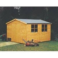 Grey felt roof. Tongue and groove roof and walls. Extra strength 16mm tongue and groove floor. Windows can be positioned either side. 12mm Tongue & Groove Cladding Tongue & Groove Flooring & Softwood Walls Tongue & Groove Roof Grey Felt Roof Frame & Cladding Panels Dip-Treated Golden Brown 2 x Doors Rim Lock 2 x Opening Windows 1 Year Guarantee - Manufacturers part number: 49439