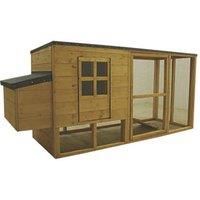 Manufactured from dip-treated, kiln-dried, planed, imported northern hemisphere timber. Integrated run nest box and sleeping quarters. Supplied with roofing felt and all hardware. Base not included. 4 Chicken Capacity 2 Perches 12mm Shiplap Cladding OSB Roof Grey Felt Roof Frame & Cladding Panels Dip-Treated Natural Timber 2 x Doors Thumbturn Lock 1 Year Guarantee - Manufacturers part number: 9449G