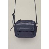 Elevate your daily essentials with our Brianne small crossbody bag, your perfect companion this season. Crafted from luxuriously soft leather, it can be comfortably worn across your body or draped over one shoulder, thanks to its long adjustable strap. This boxy style, inspired by vintage camera bags, keeps your belongings secure with a zipped main compartment, a popper closure front compartment, and an array of convenient open and zipped pouches inside. Brianne is not just practical but also brimming with Moshulu charm. It features delightful woven plait detail, charming Moshulu-branded studs, lovely twisted leather zip pulls, and a vibrant textile lining. It's the perfect blend of style and functionality. | Moshulu Women's 'Brianne' Small Leather Crossbody Bag in Indigo - Manufacturers part number: Moshulu_5019867996819