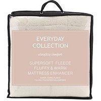 Everyday Collection Super Soft Teddy Fleece Deep 5Cm Mattress Topper in Single, Double and King Sizes Super soft fleece with a teddy feel is sumptiously filled with 300gsm of polyester hollowfibre giving you a depth of 5cm with 4 elastic corners straps to ensure a secure fit to your mattress. Material Content: 100% Polyester Washing Instructions: Machine Washable Filling: Hollowfibre 240gsm Soft Fleece cover Cream Deep fill to approx 5cm Ideal for those colder nights warm & cosy Extends the life of matt...