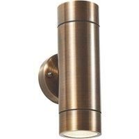 This contemporary BRAC outdoor up and down from Zink will transform your outdoor wall into a feature.Compact and stylish, these outdoor wall lights are both weatherproof and hard-wearing, designed to last against the elements, providing additional security while bringing a designer look to the exterior of your home at the same time.Exterior wall lights are perfect for use in any outdoor space, such as exterior walls, front door lighting or garden wall lights creating an atmospheric lighting effect.Please note, this wall light requires 2 x GU10 bulb max 7W LED (sold separately).An IP54 rating and solid brass body with a sleek bronze finish means that you can install this high quality outdoor light safe in the knowledge that it will operate reliably, whatever the weather.Complete mounting and connecting accessories included.Requires 2 x GU10 bulbs max 7W LED (sold separately). - Manufacturers part numbers: ZN41102BRNZ|ZN-41102-BRNZ