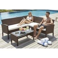 The Nevada L Shaped lounging set is the perfect set for any type of garden. The set comes with a 2 seater bench and 3 seater bench to form the L shape. It also has a coffee table. It is the perfect set for your family and friends to enjoy. Made from the highest quality polyethylene wicker around galvanised steel frames it is durable, strong and effortlessly classic. Features and Benefits Galvanised Steel Frames Compliments any outdoor living area Specifications Dimensions: 2 seater bench - 110x7...