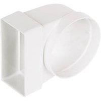 PVC appliance connector used for connecting 100mm round pipe or flexi hose to 110 x 54mm flat channel ducting at a 90 angle. Compliant with Part F of the Building Regulations. Suitable for commercial and domestic use. White W x D x Lg: 117 x 50 x 141mm Channel Width: 100mm Model No: 40300 - Manufacturers part number: 40300