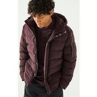Barbour International Daleson Padded Jacket- Dark Red Size & Fit True to size - order your usual size Regular fit Regular length Available in sizes S - 2XL Details Daleson Padded Jacket by Barbour International Dark Red All-over wide baffle design provides comfortable warmth Long sleeves with elasticated cuffs Deep wadded collar Adjustable fixed hood Concealed stud and zip-up front fastening Zipped pocket to the sleeve Side seam pockets Material & Care Material Content: Outer/Inner: 100% Polyester Washi...