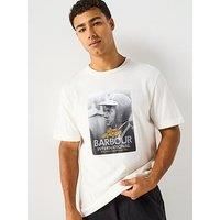 Barbour International Steve McQueen Relaxed Port Graphic Top Size & Fit True to size - order your usual size Relaxed fit Available in sizes S - 3XL Details Steve McQueen Relaxed Port Graphic T-Shirt by Barbour International White Steve McQueen graphic print Crew neck Short sleeves Material & Care Material Content: Main: 100% Cotton Washing Instructions: Machine Washable