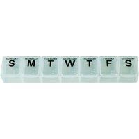 Aidapt Weekly Pill Box Clear/White These affordable Large Weekly Pill Dispensers provide a simple reminder to take your medication; ideal for use as a general pill sorter or a handy pill dispenser during holidays. Features: One compartment per day Days of the week clearly marked Easy-to-use flip top lids Ideal for home and travel use Specifications: Dimensions: H:35.0 x W:10.0 x D:3.2 cm Model Number: A5876 - Manufacturers part number: VM930B
