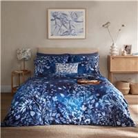 Mystical, inky blue sprays of delicate foliage adorn this luxurious 100% cotton cushion. Scatter across the duvet set from the same collection to create a soothing and harmonious sleeping space or use it to adorn your sofa to create a dreamy and inviting feel in your home.This cushion comes filled with a feather pad and is finished with a smart inky blue piped edge.