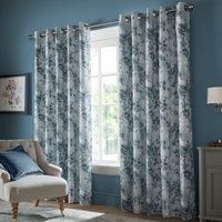 Experience the delicate beauty of the intricate leaf silhouette that adorns these elegant curtains. A subtle texture complements the stunning smoke blue palette, all printed onto high-quality slub-textured cotton and finished with eyelet detailing and an effective black-out lining. - Manufacturers part number: AWREBLAMILLHAYESSMOKEBLUE3445