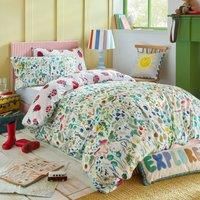 This charming design invites you down a garden path adorned with sweet toadstools and wild foliage, where playful frogs await discovery. Perfect for adventurous children who love exploring, splashing in puddles, collecting acorns, and climbing trees, it captures the spirit of a young explorer and forager. The reversible duvet covers second pattern features beloved ladybirds, celebrated by gardeners and children alike, adding a delightful touch to any childs room. Printed on natural white 100% cotton, it... - Manufacturers part number: AWBDSBGARDENEXPLORERMUL0116